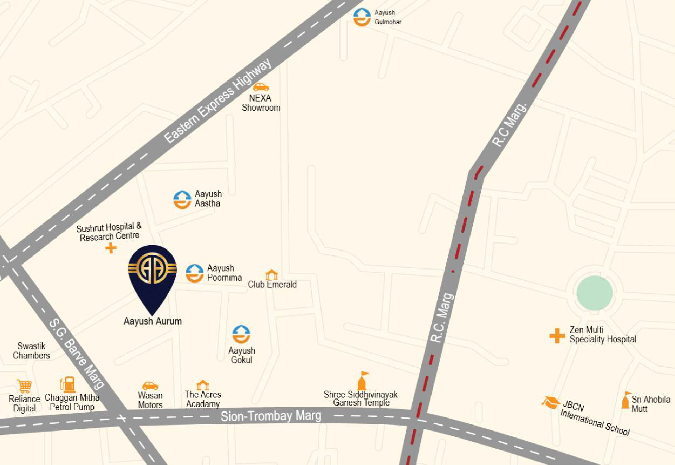 Site Address : Plot No-8 & 9, Aayush Aurum, Opposite Club Emerald, Swastik Park, Chembur, Mumbai